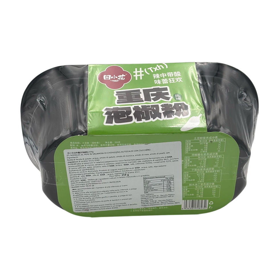 Hot pot auto-riscaldante dal sapore deciso, piccante e leggermente acidulo. Un piatto ricco e avvolgente che unisce noodles di patate dolci dalla consistenza elastica.