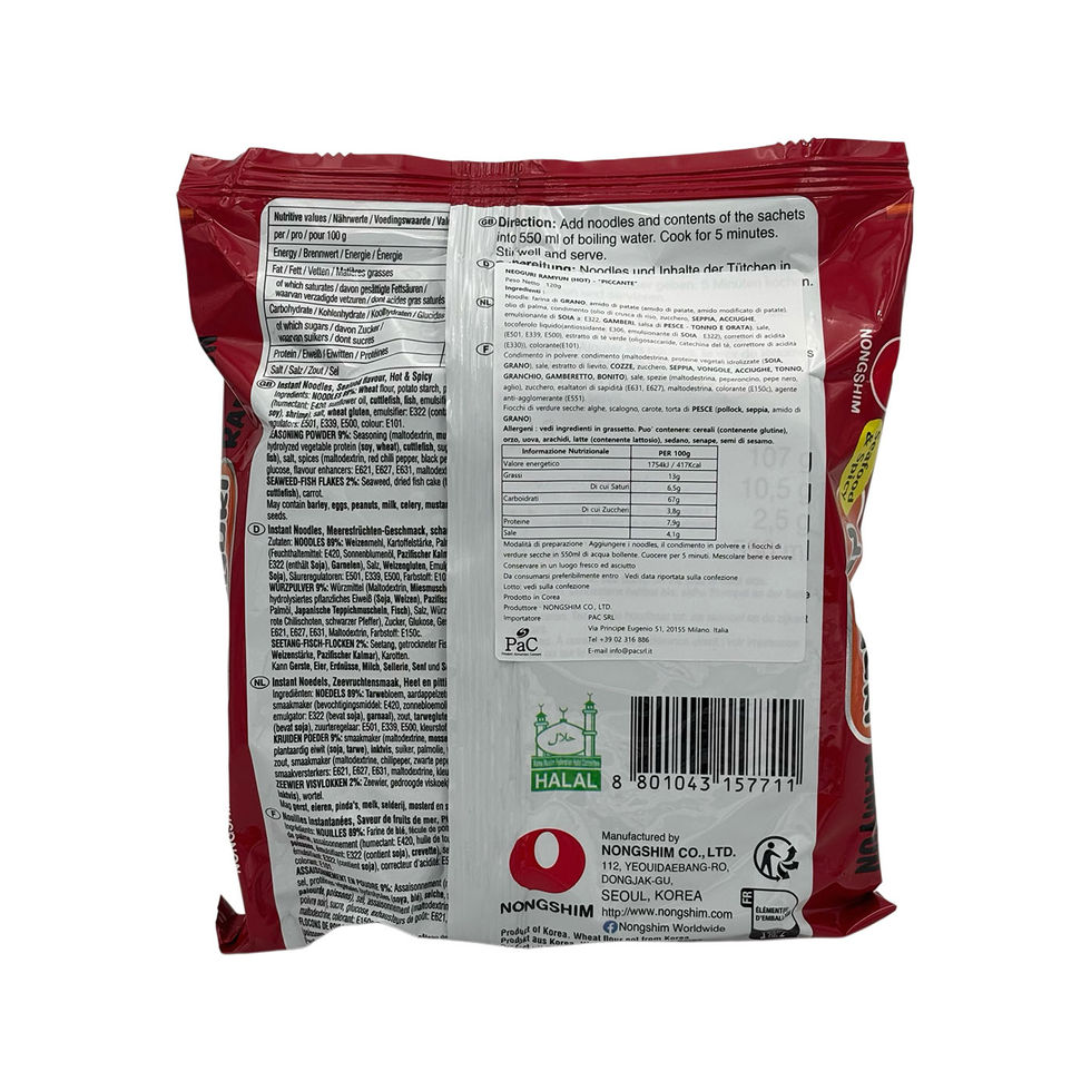 Ramyun istantanei coreani al gusto frutti di mare del marchio Nongshim.