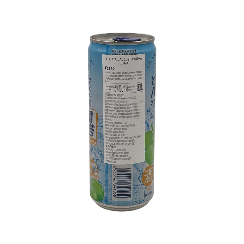 Il cocktail frizzante RIO al gusto vodka e uva è una bevanda alcolica leggera e rinfrescante, perfetta per chi cerca un drink pronto da gustare. Con una gradazione del 5% vol, combina la freschezza dell’uva con le note morbide della vodka, offrendo un equilibrio piacevole e dissetante.